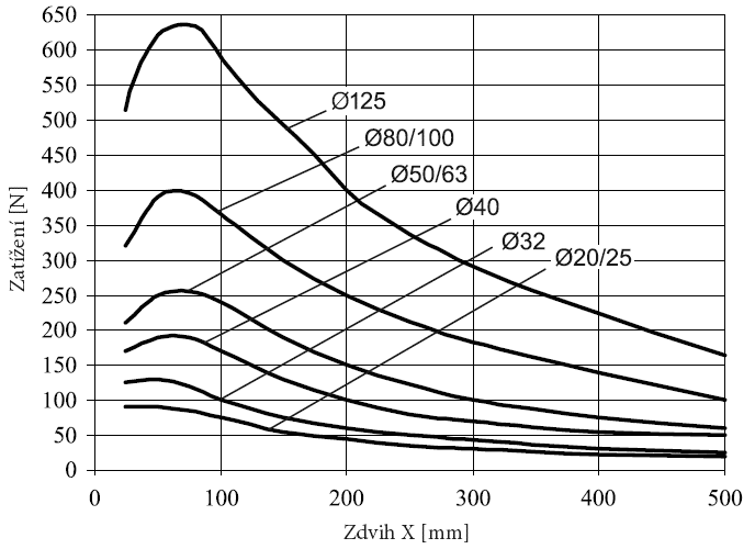 | Průměr pístu | 20 | 25 | 32 | 40 | 50 | 63 | 80 | 100 | 125 |